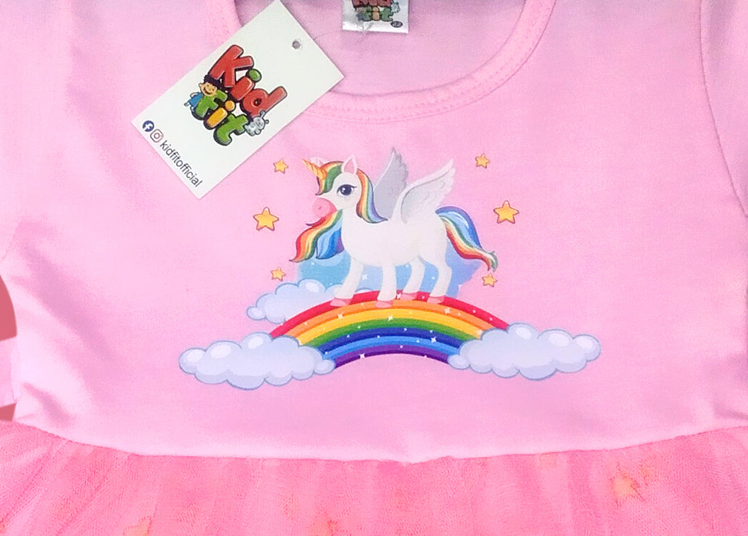 Make your little princess shine with this beautiful Unicorn frock! The dress is one piece, with a soft jersey top and a net skirt attached. The inside has a smooth silk lining, so it feels gentle on your child’s skin. The cute Unicorn characters on the front and skirt make it extra special!