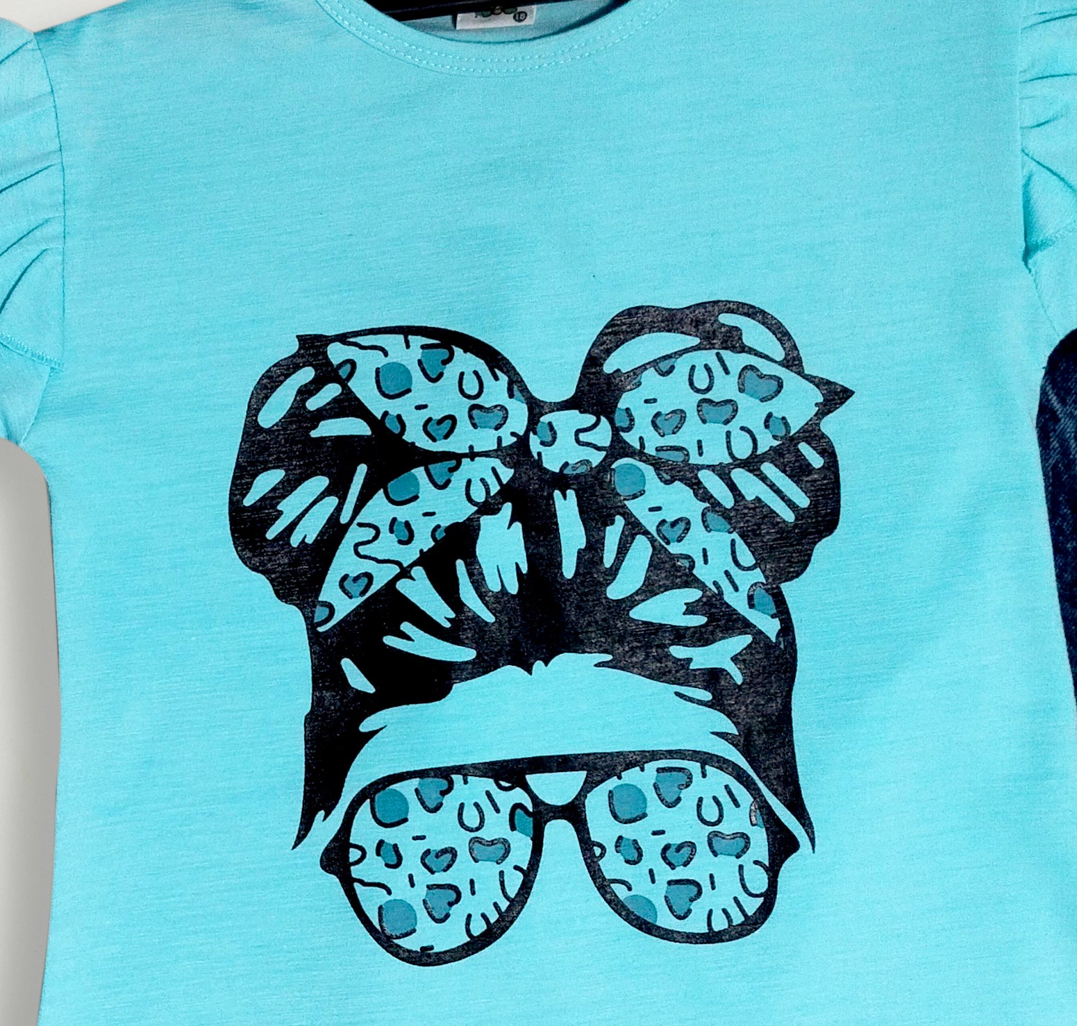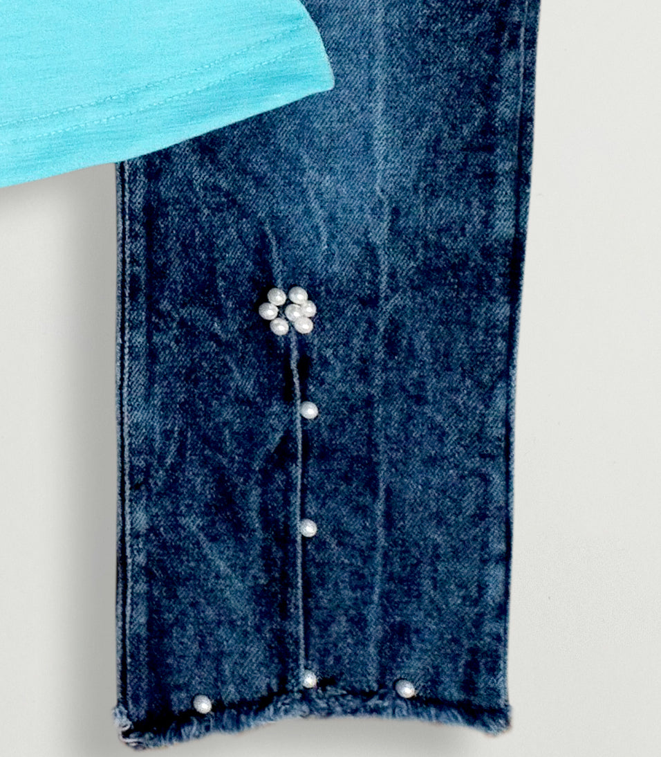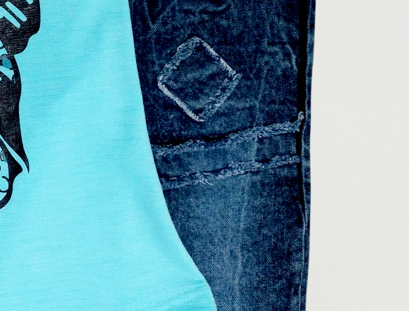 Two-piece set for girls: soft cotton jersey top and denim bottom