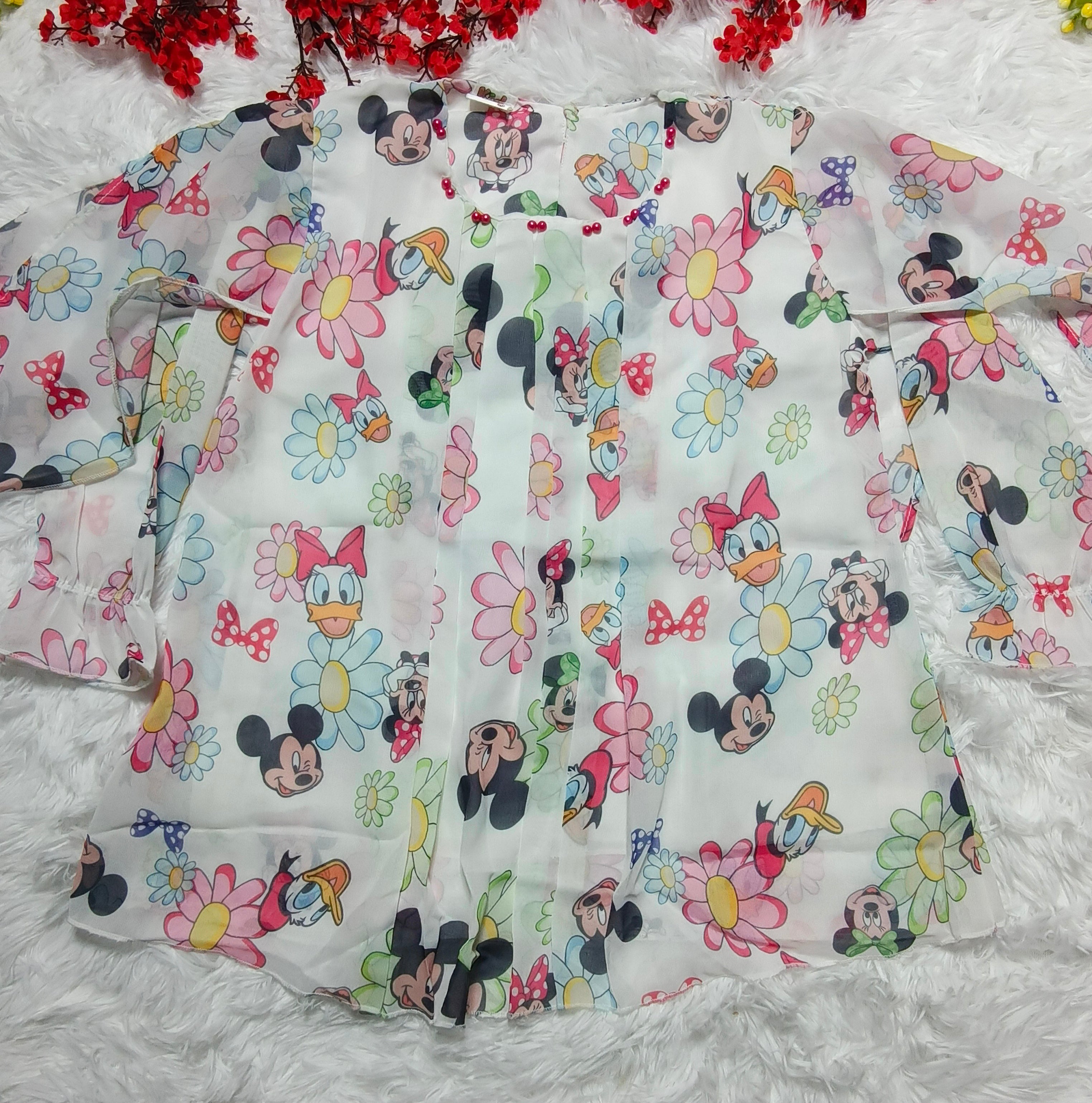 Top: Made from lightweight, breathable chiffon in Colorful Minnie Mouse, Daisy Duck, and floral print. Full sleeves with a comfortable fit, perfect for summer and festive occasions.